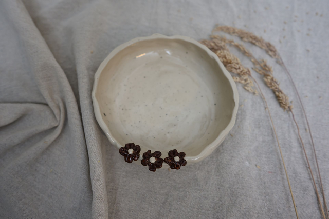 A handcrafted ceramic bowl featuring delicate, hand-sculpted 3D florals and hand painted details. Each piece is unique, blending artistry and function in a beautiful, one-of-a-kind design.